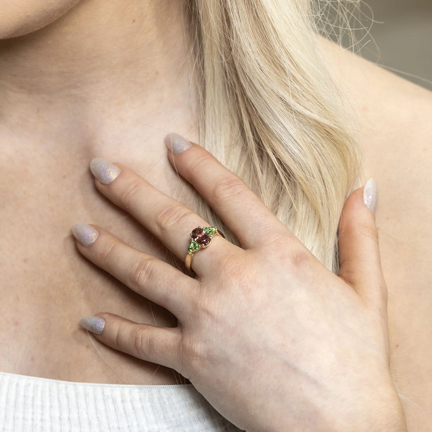 The claw-set lucida style setting provides the perfect stage to showcase the stunning malaia garnet and tsavorites.
